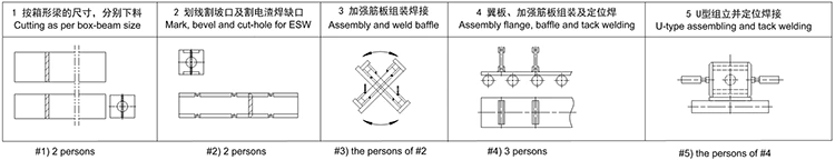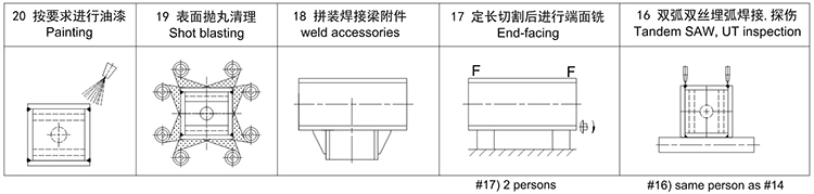 Urmează graficul fluxului de producție pentru producția de la plăci până la fasciculul H și inspecția finală.